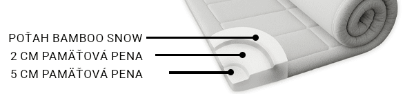Dvojitá vrstva zaistí skvelú termofunkciu a zmäkčenie. Izoluje od chladného podkladu, zmäkčuje a vyrovnáva nerovnosti. Vzhľadom k vysokej vrstve peny efekt pomalého "prepadávania" do pamäťovej peny skutočne cítite. Vďaka vrstve peny všitej do poťahu je vrchný matrac pomerne húževnatý.
