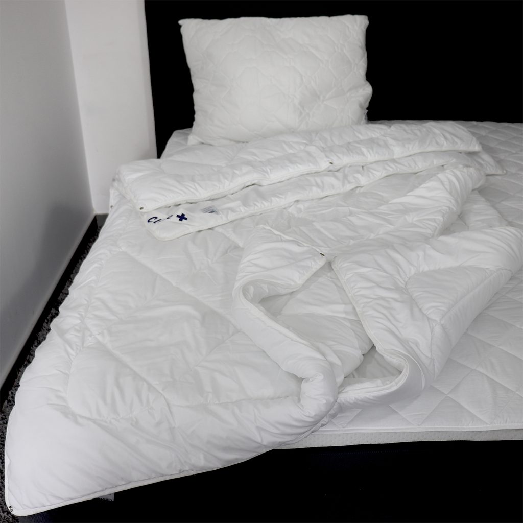 Lôžkoviny sú vyrobené z dutých konjugovaných vlákien, takže sú vzdušné, skvele tepelne izolujú a bránia tiež zadržiavaniu a tvorbe roztočov a alergénov. Povrchová látka je vyrobená zo zmesi bavlny a polyesteru. Jej extra trvanlivé prevedenie umožňuje pranie na teplote 95°C, vďaka ktorej sa zlikvidujú všetky baktérie, plesne a nečistoty.